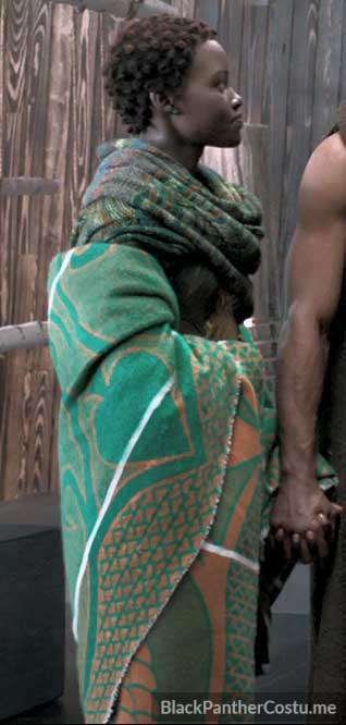 “Nakia is a war dog. She’s an operative; a spy, so she has the most looks of everyone in the film. She goes undercover as a Nigerian captive in the hijab, but then I had to quickly get her out of the hijab and give her a costume that looked like she could’ve been hanging out in any city in Africa. She had to look like she could walk down any street and blend in. When we see Nakia at the airstrip, we see her in jeans and a flowy top and a scarf. Then we see her at Warrior Falls in her traditional costume for the traditional ceremony as the River Tribe’s primary fighter. Then we see her in her casino dress. She has a lot of different costumes.