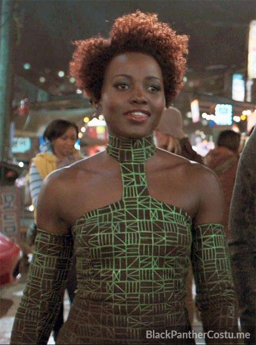 “We know that Lupita Nyong’o can wear just about anything and make it look stunning, but for the scene where her character Nakia gets dressed up for an undercover mission at a South Korean casino, Carter had to get specific. “It seems as though it would be a sky-is-the-limit thing, but it really isn’t because this is a superhero film and she is a superhero,” said Carter. “There were parameters: She’s entering the casino undercover as an African princess. She has to wear green, because she is a part of the River Tribe. She needs to look elegant, and therefore needs to wear an elegant dress. She also needs to be able to fight, so she needs to have a dress that will allow her to move and to fight.”