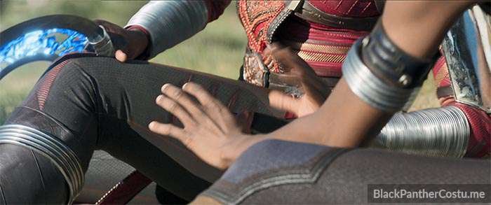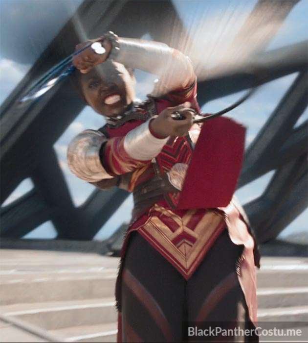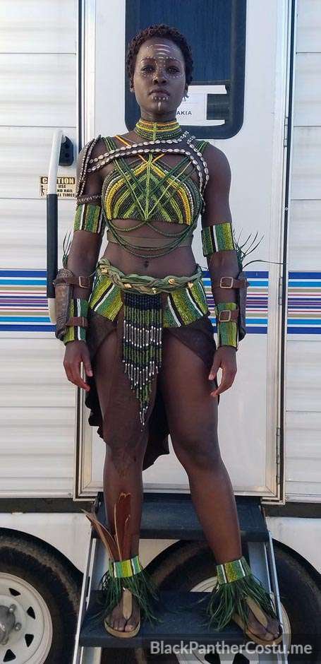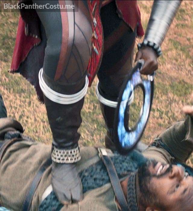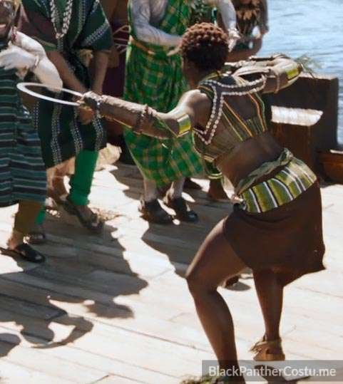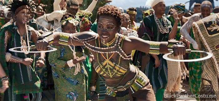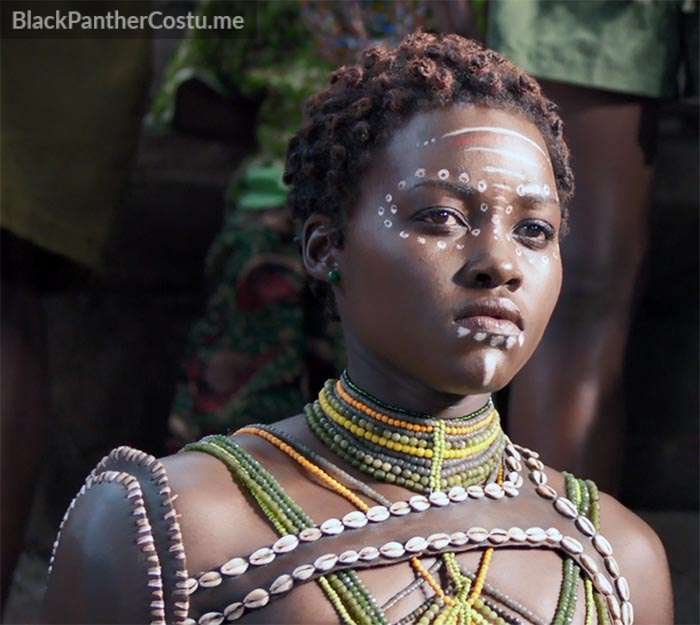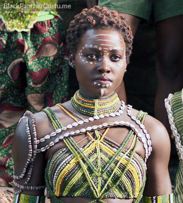 “Nakia’s more traditional outfit is inspired by the Surma and the Suri people of Africa. Nakia’s tribe are fisherman, so some of her designs are based on different cultures, nations and people of Africa who live near the water. Hence Nakia’s tribe is called The River Tribe.