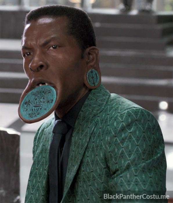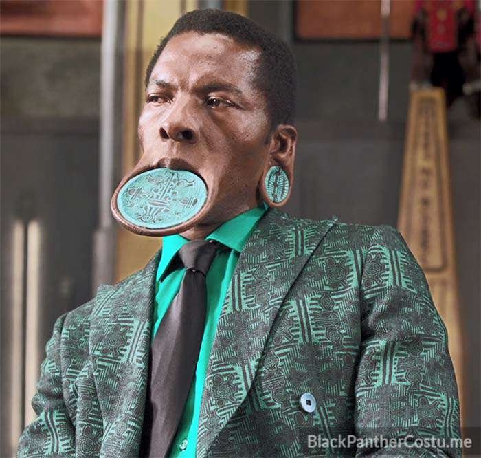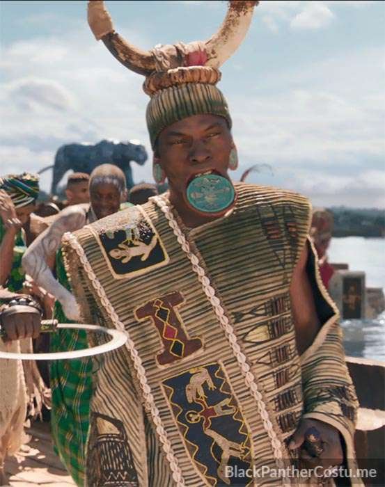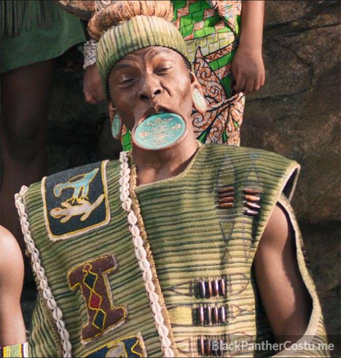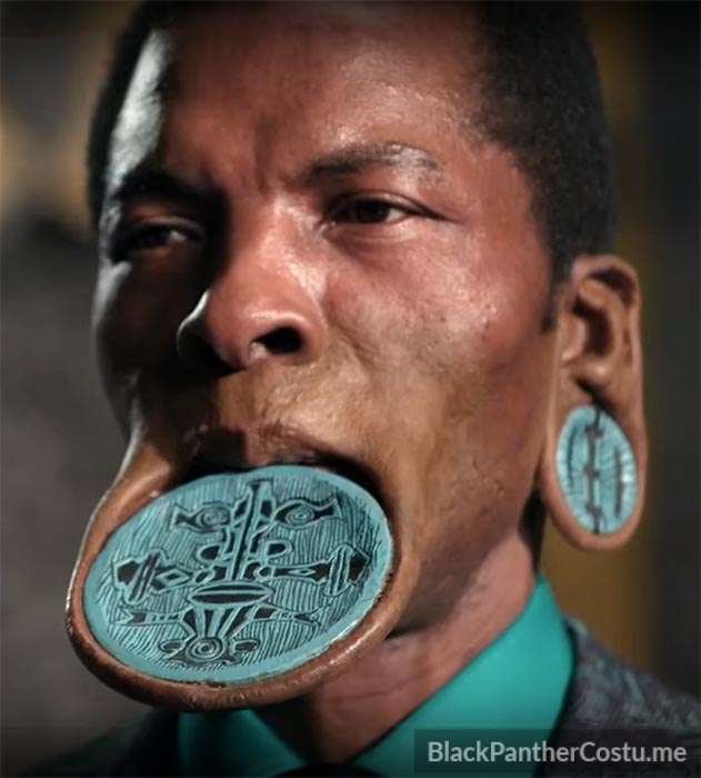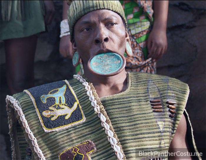 The River Tribe is Nakia’s tribe. The Elder wears a lip plate and ear gauges.
